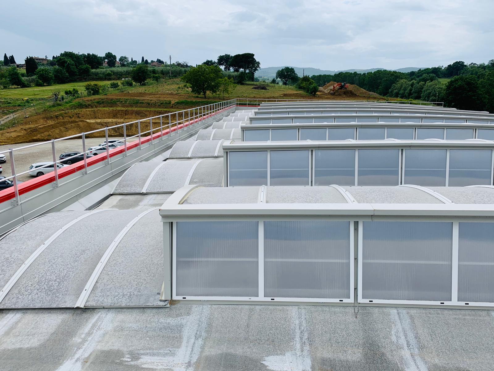 Parapetti permanenti tassellati su piano verticale o orizzontale modello “GIGO” con montate verticale o inclinato di altezza pari a 120 cm, ed interasse massimo di posa tra due montanti consecutivi non superiore a 1,50 m. Possono essere installati esternamente o internamente alla struttura.