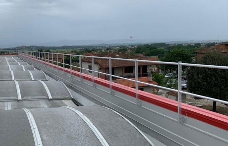 Parapetti permanenti tassellati su piano verticale o orizzontale modello “GIGO” con montate verticale o inclinato di altezza pari a 120 cm, ed interasse massimo di posa tra due montanti consecutivi non superiore a 1,50 m. Possono essere installati esternamente o internamente alla struttura.