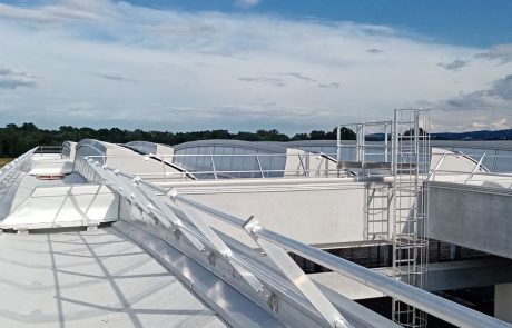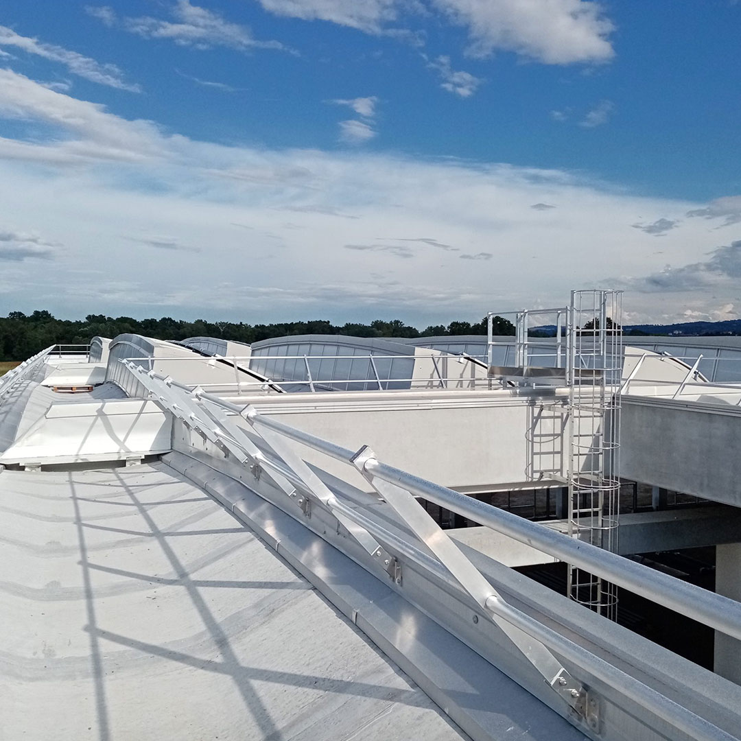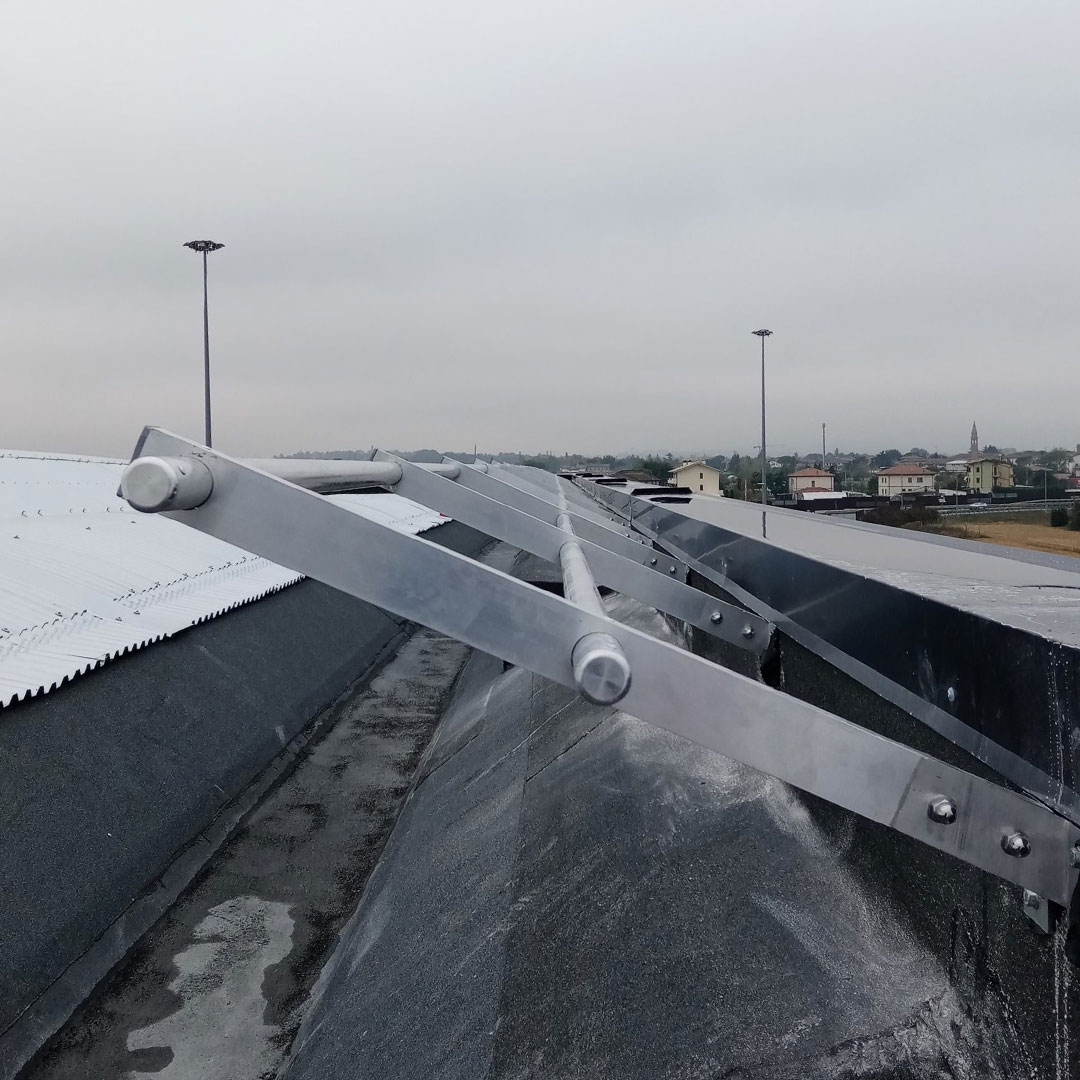 Parapetti permanenti tassellati su piano verticale o orizzontale modello “GIGO” con montate verticale o inclinato di altezza pari a 66 cm, ed interasse massimo di posa tra due montanti consecutivi non superiore a 1,50 m. Possono essere installati esternamente o internamente alla struttura.