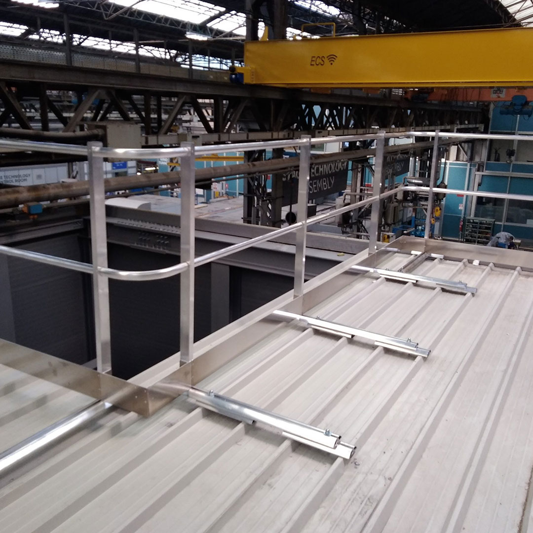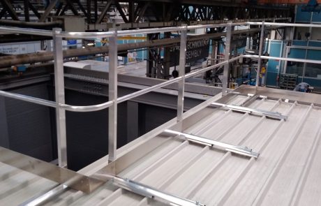 Parapetti permanenti instaollati su lamiera con montante verticale o inclinato di altezza pari a 120cm, ed interasse massimo di posa tra due montanti consecutivi non superiore a 1,50 m