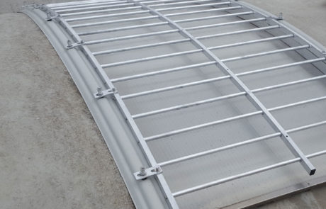 Struttura realizzata completamente in alluminio ed assemblata meccanicamente con bulloneria in acciaio inox e tassello in teflon per consentire le dilatazioni termiche.