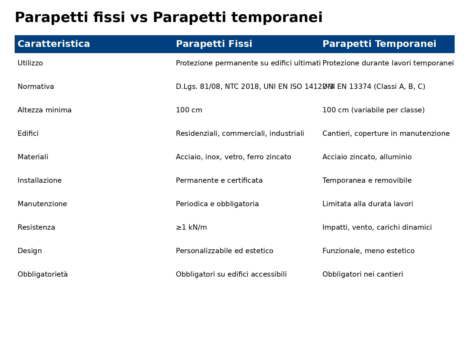 La distinzione tra parapetti fissi e parapetti temporanei è fondamentale per garantire la sicurezza in base allo stato e alla funzione dell’edificio.
