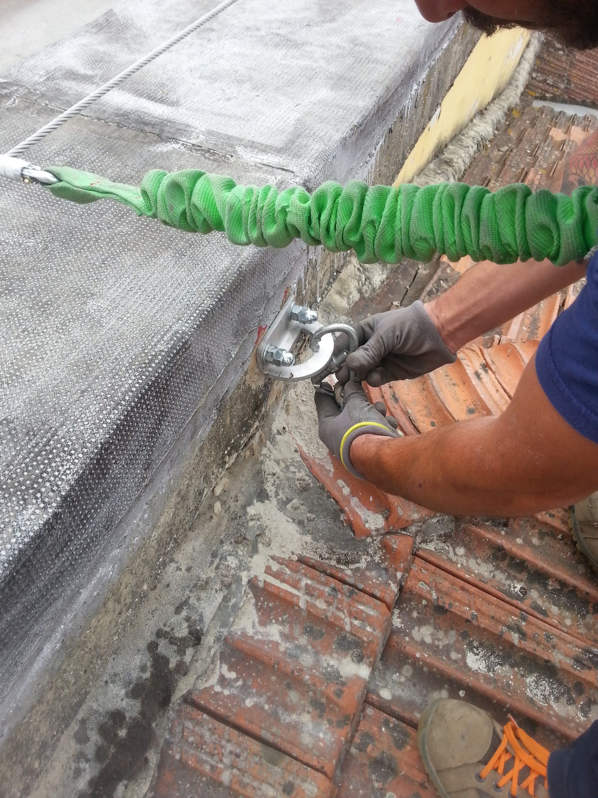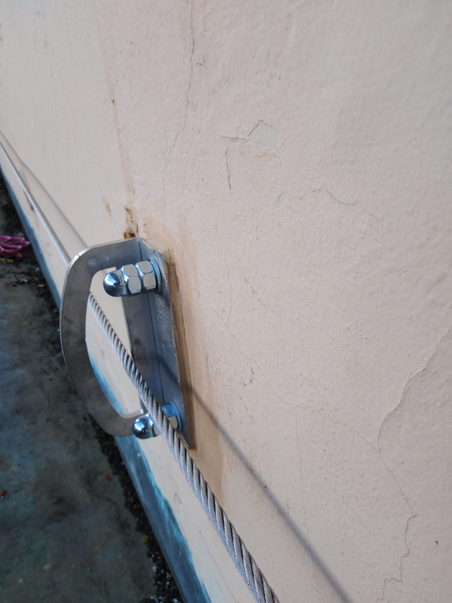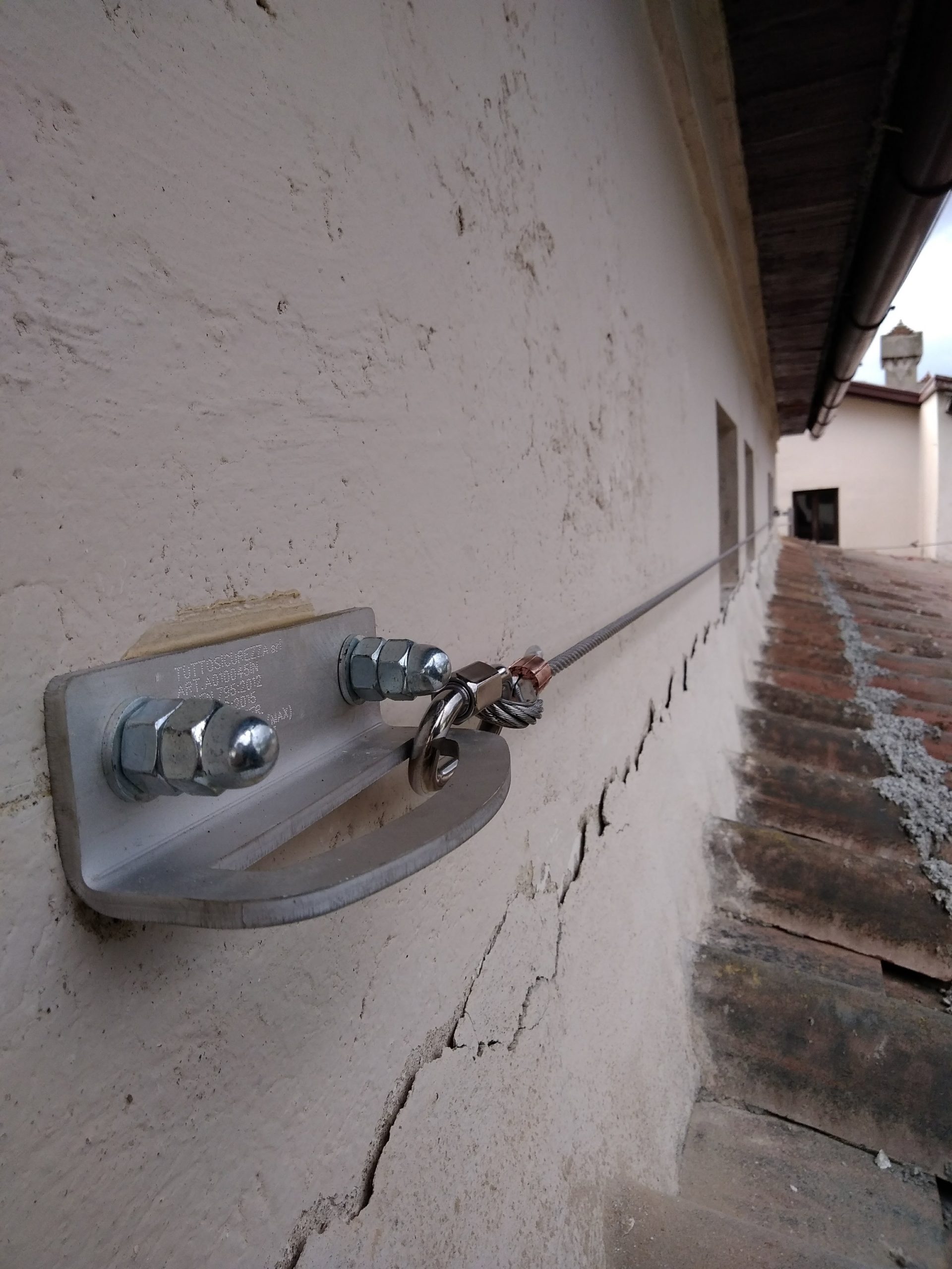 Dispositivo di ancoraggio a muro in acciaio inox AISI 304, utilizzabile come estremità ed intermedio per linea vita (tipo C) o come dispositivo di ancoraggio individuale (tipo A).